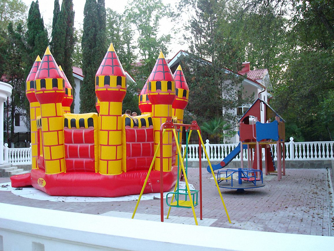 В пансионате уделяют большое внимание детскому комфорту и отдыху. Для этого установлены современные детские горки и оборудованы игровые площадки на территории. Есть надувные батуты для детей разного возраста. В бассейне есть детское отделение для самых младших гостей базы отдыха.